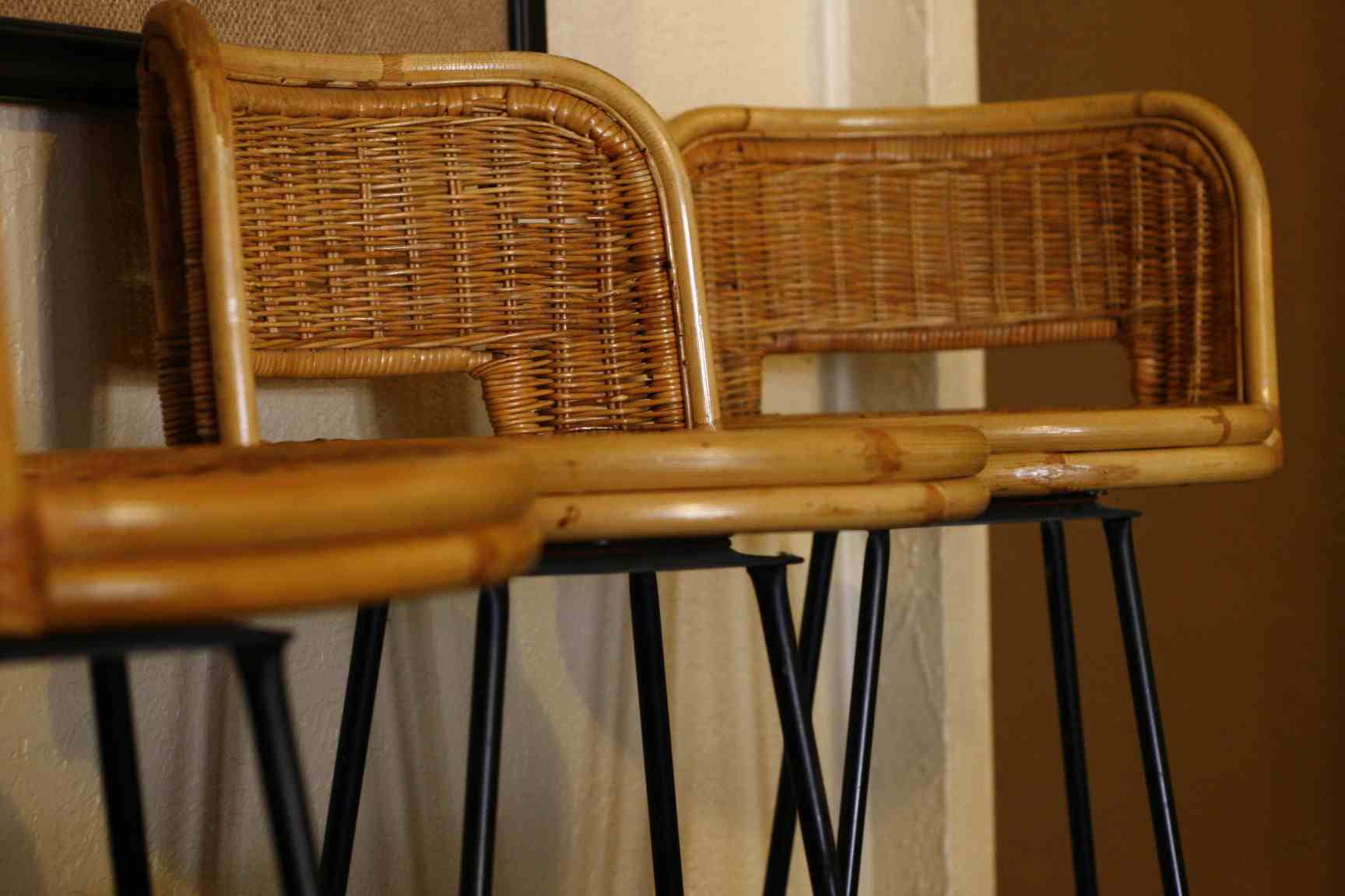 Sit. Spin. And take a drink in these three bamboo mid-century bar stools. These darlings would look lovely around a tall kitchen table or buddied up to a swank 50s-style bar. Either way, you’ll be sitting in style.